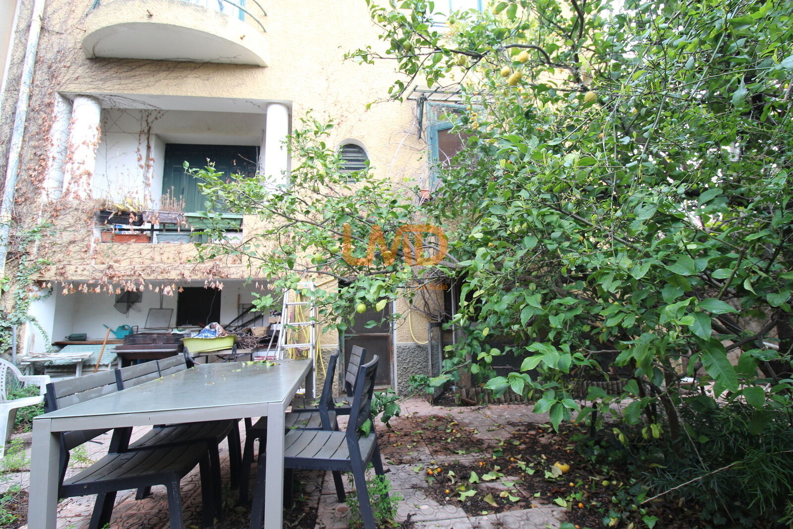 Pièce de vie traversante climatisée avec balcon donnant sur le jardin, cuisine séparée et bureau.