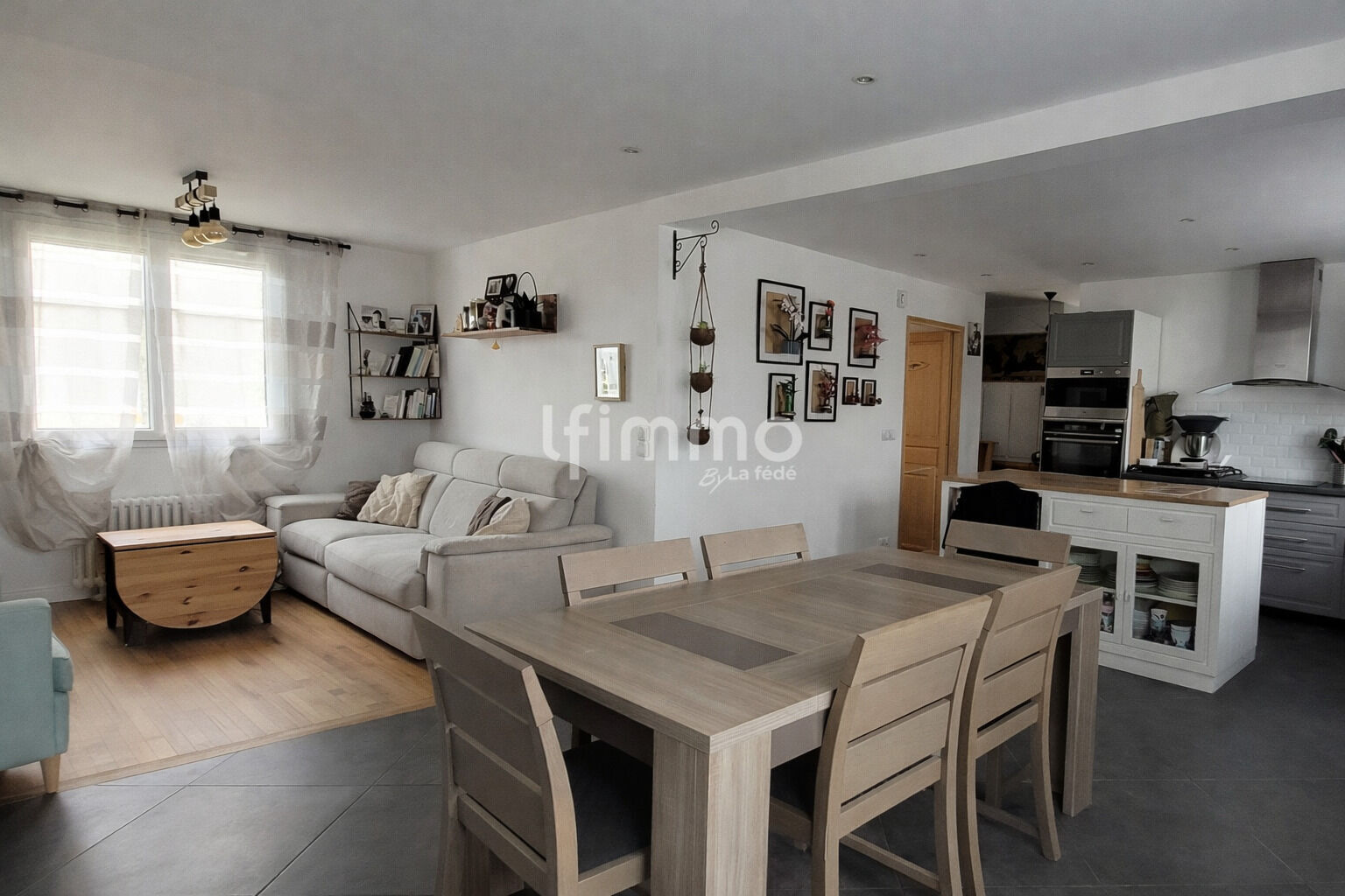 Dès l’entrée, vous découvrirez une agréable pièce de vie lumineuse composée d’une cuisine ouverte sur le séjour et le salon, offrant un espace convivial et fonctionnel.