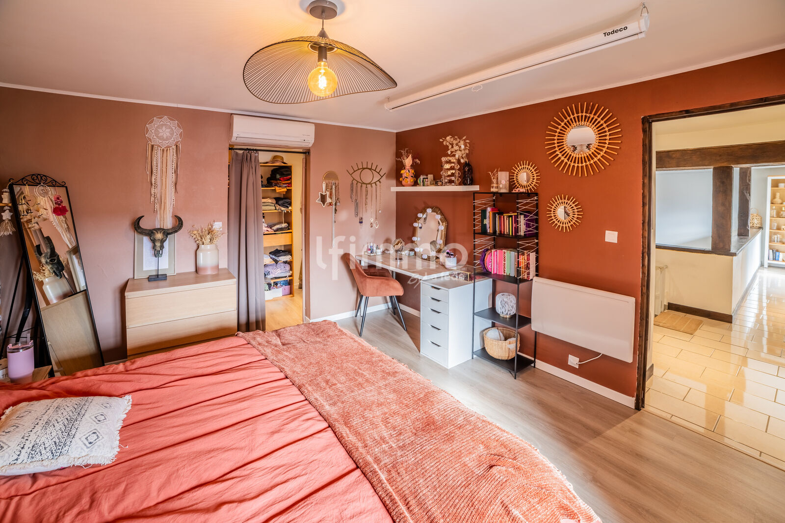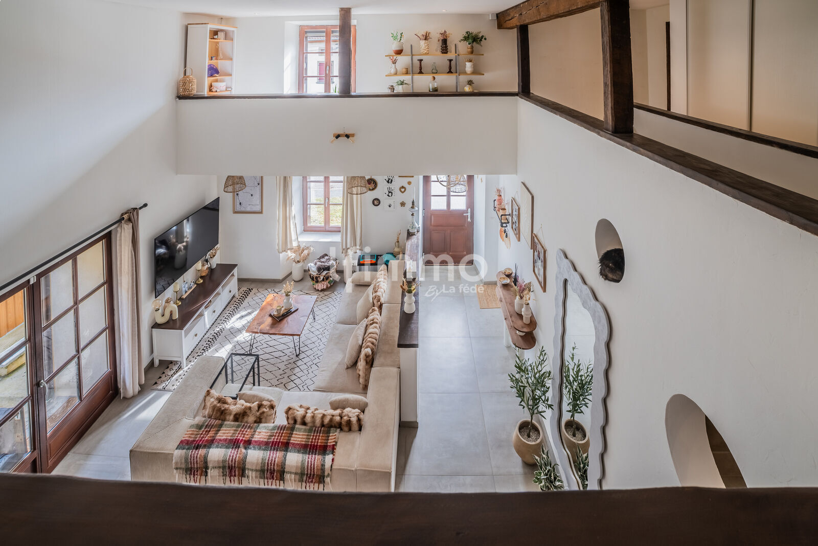 La mezzanine, presque périphérique, apporte une touche d’originalité et d'un espace supplémentaire, parfaite pour un l'agencement d'un coin lecture ou bureau .
