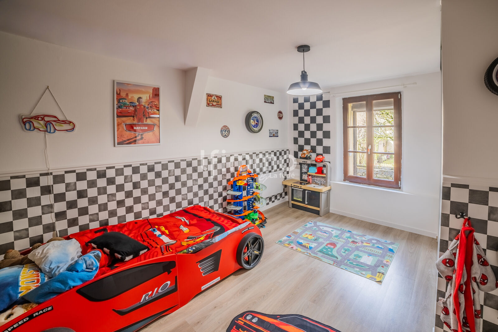Le garage 🚗 attenant offre un espace de rangement optimisé, complété par d’autres zones astucieusement aménagées dans la maison, pour maximiser chaque mètre carré.