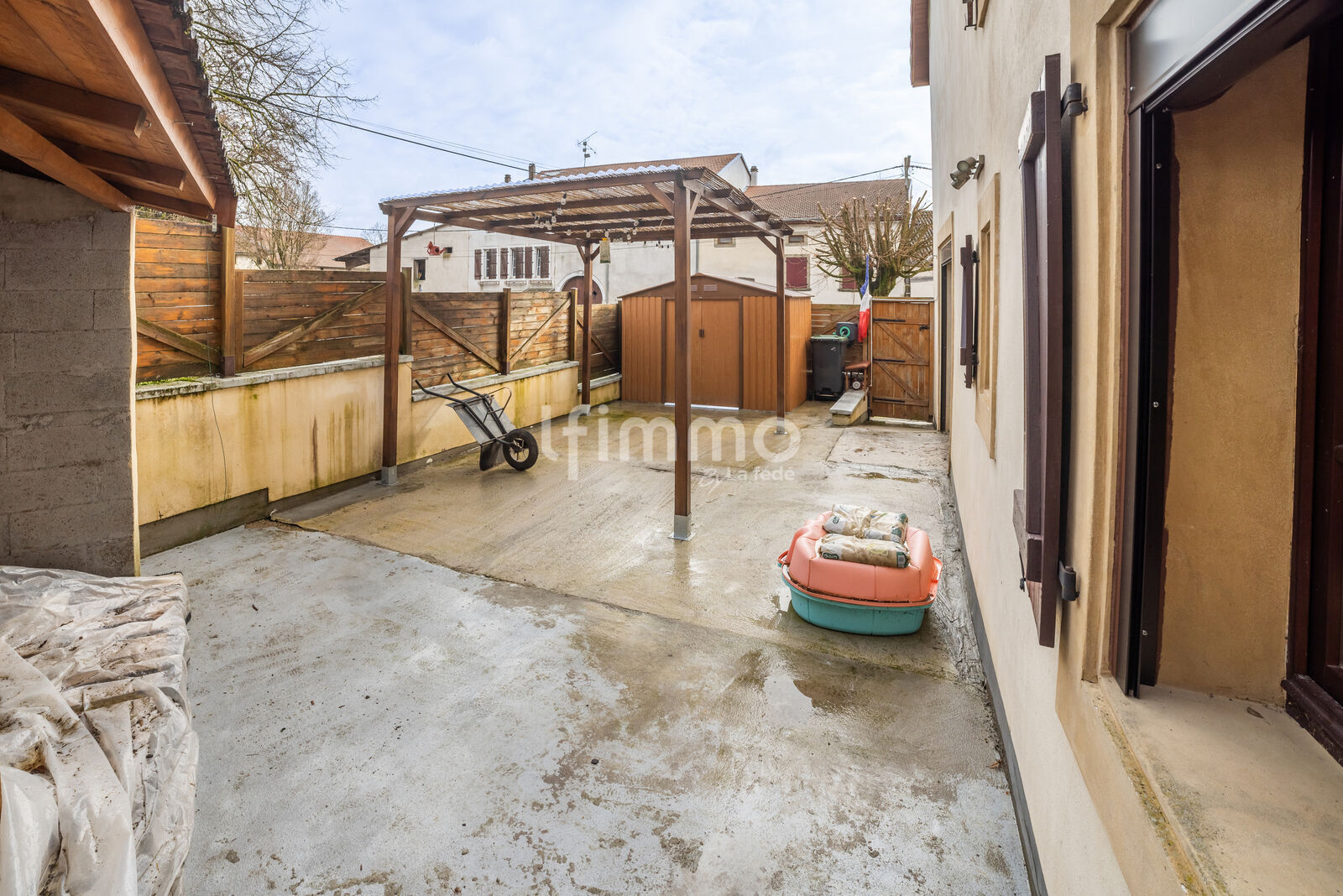 À l’extérieur, la terrasse orientée Est vous promet de doux petits-déjeuners au soleil 🌞. Bétonnée, dotée d'un appentis et d'un abris, elle reste facile d'entretien.