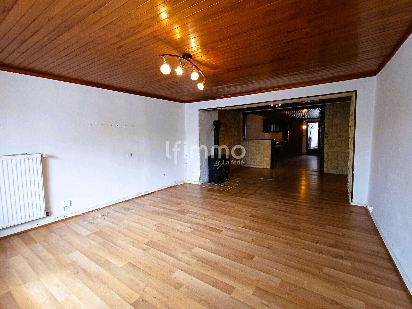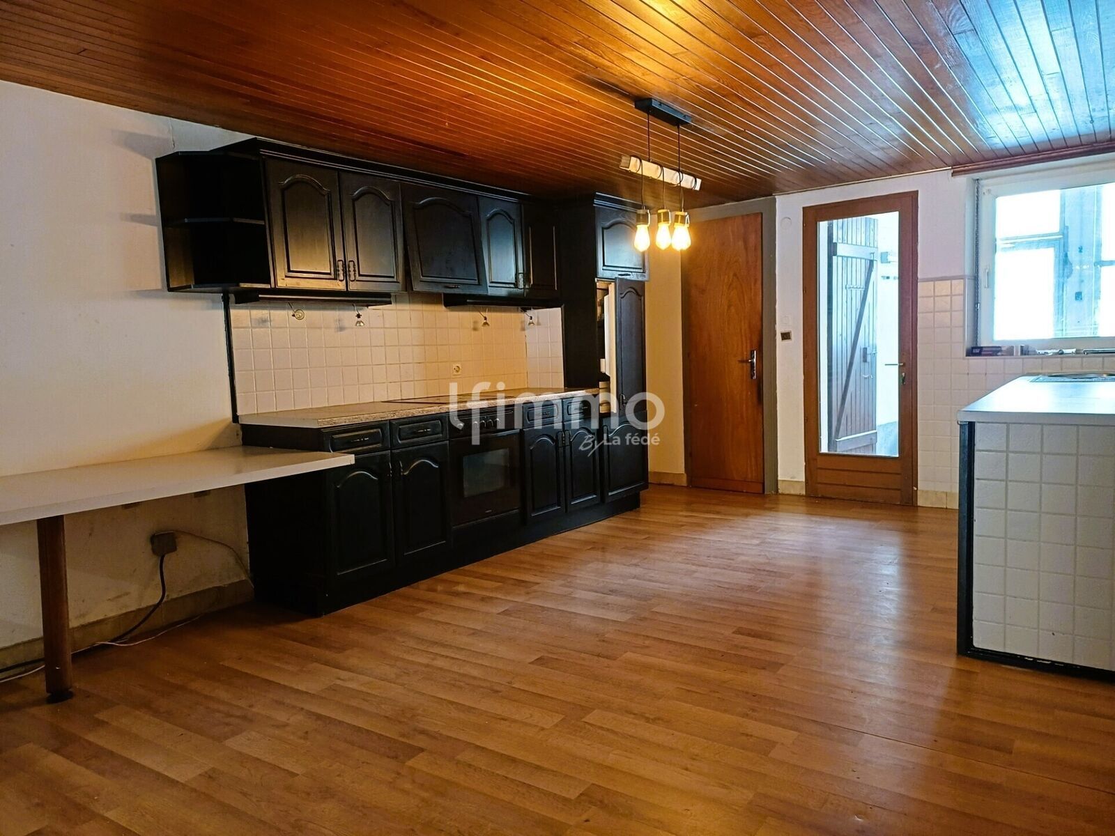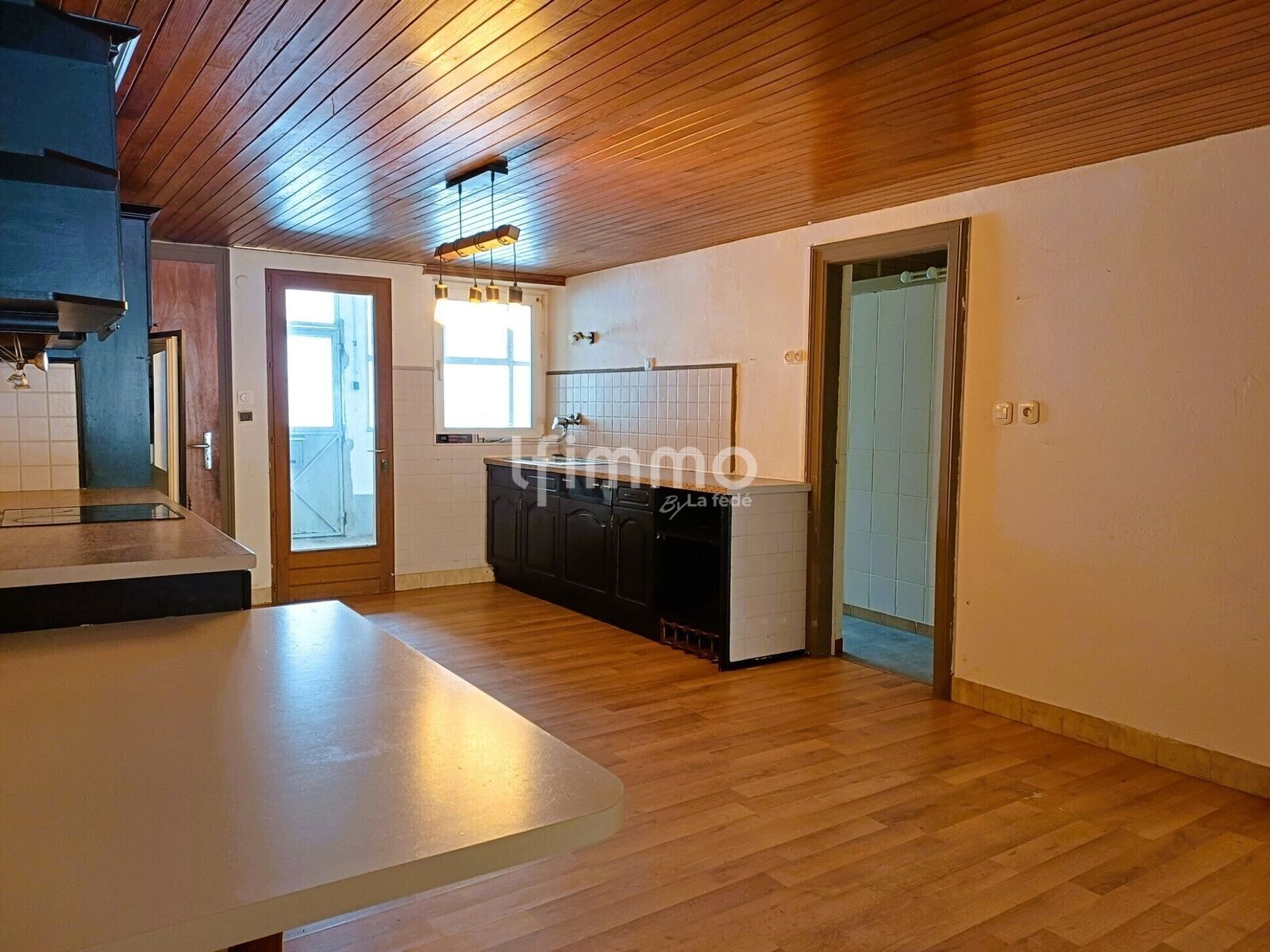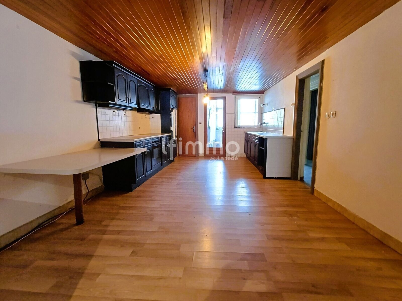 L’entrée mène à une agréable pièce de vie d’environ 49 m² comprenant une grande cuisine ouverte sur le séjour, créant un espace convivial et lumineux, idéal pour la vie quotidienne comme pour recevoir.