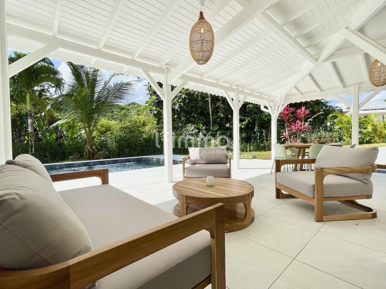 Découvrez cette magnifique villa créole au style contemporain, nichée dans un environnement verdoyant et paisible.