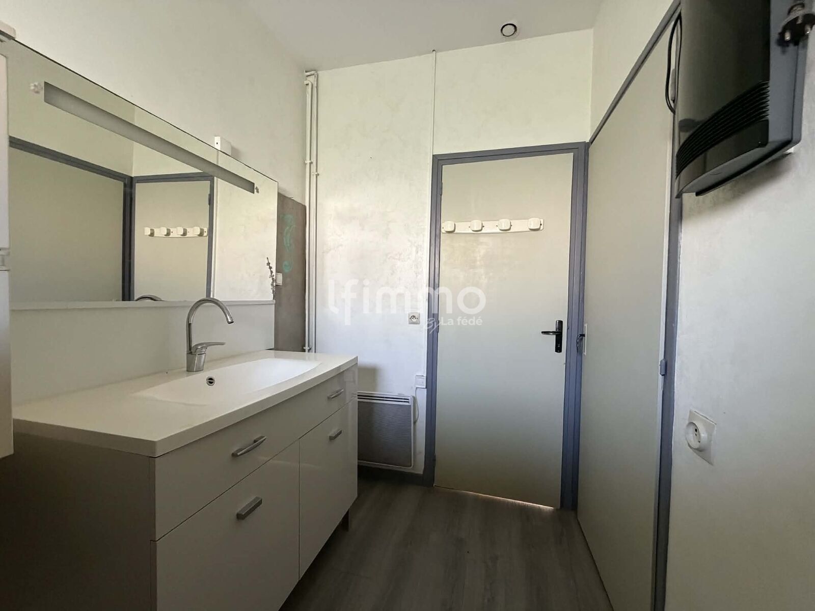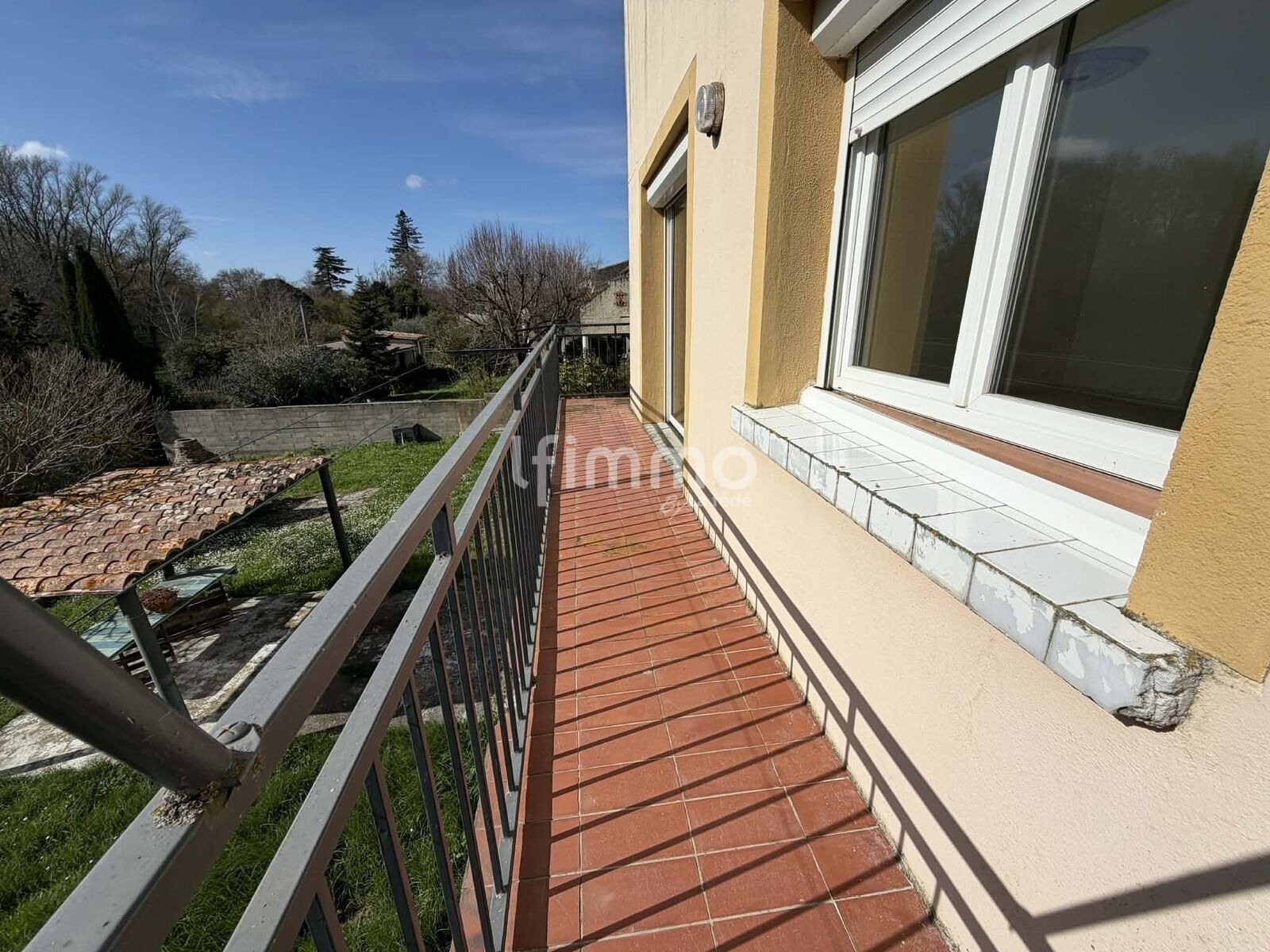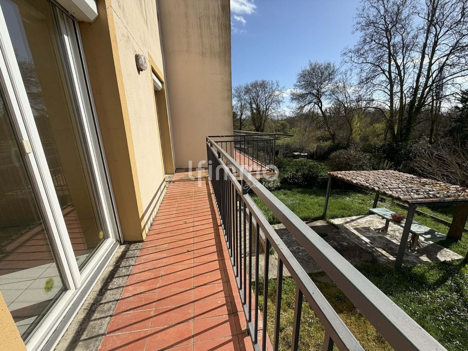 À l’étage, un appartement d’environ 100 m² avec grand balcon, anciennement loué, offrant un bon potentiel locatif.