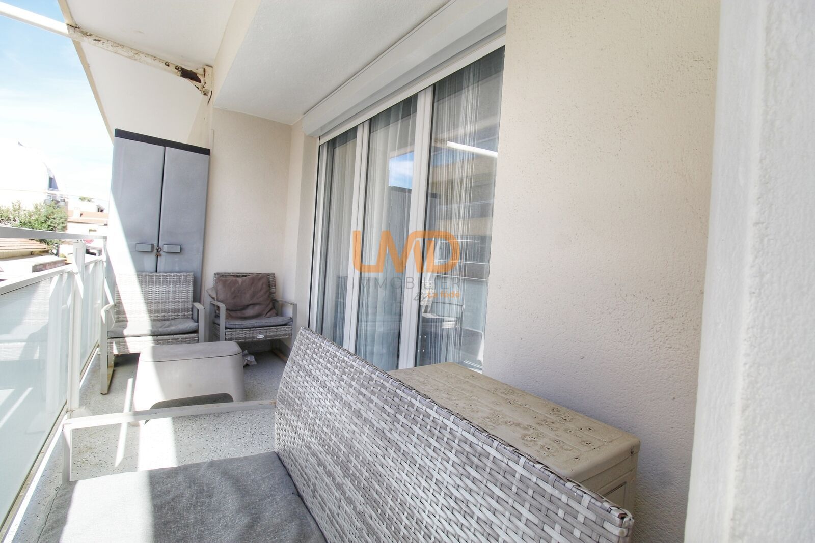 Au 1er étage d'une résidence sécurisée avec ascenseur, cet appartement est composé d'un séjour lumineux climatisé avec accès direct à un balcon pour profiter des belles journées, ainsi qu'une cuisine séparée et équipée.