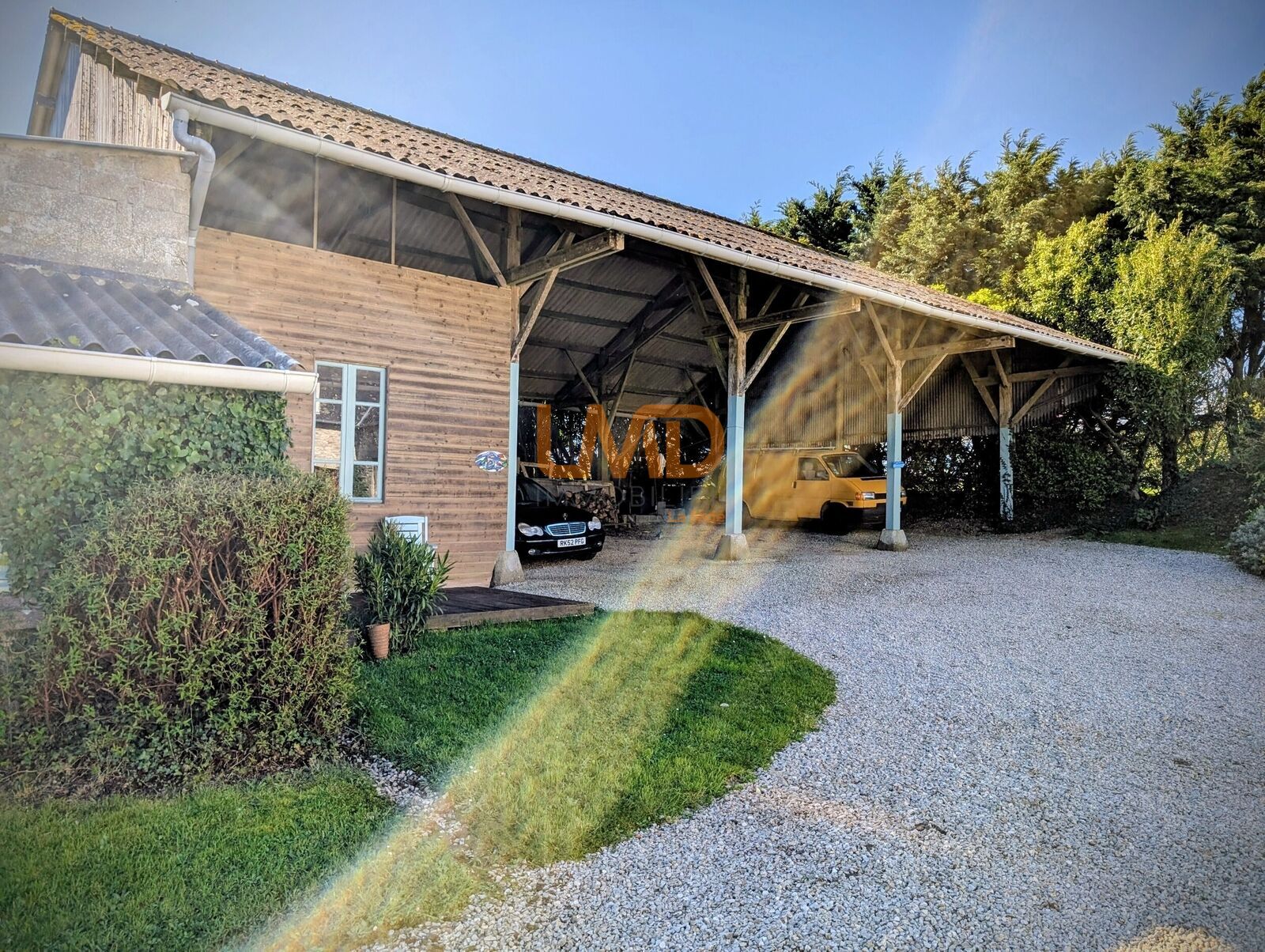 La propriété vous propose un hangar servant de places de stationnement. Deux ateliers dont un parfait pour un(e) artiste.