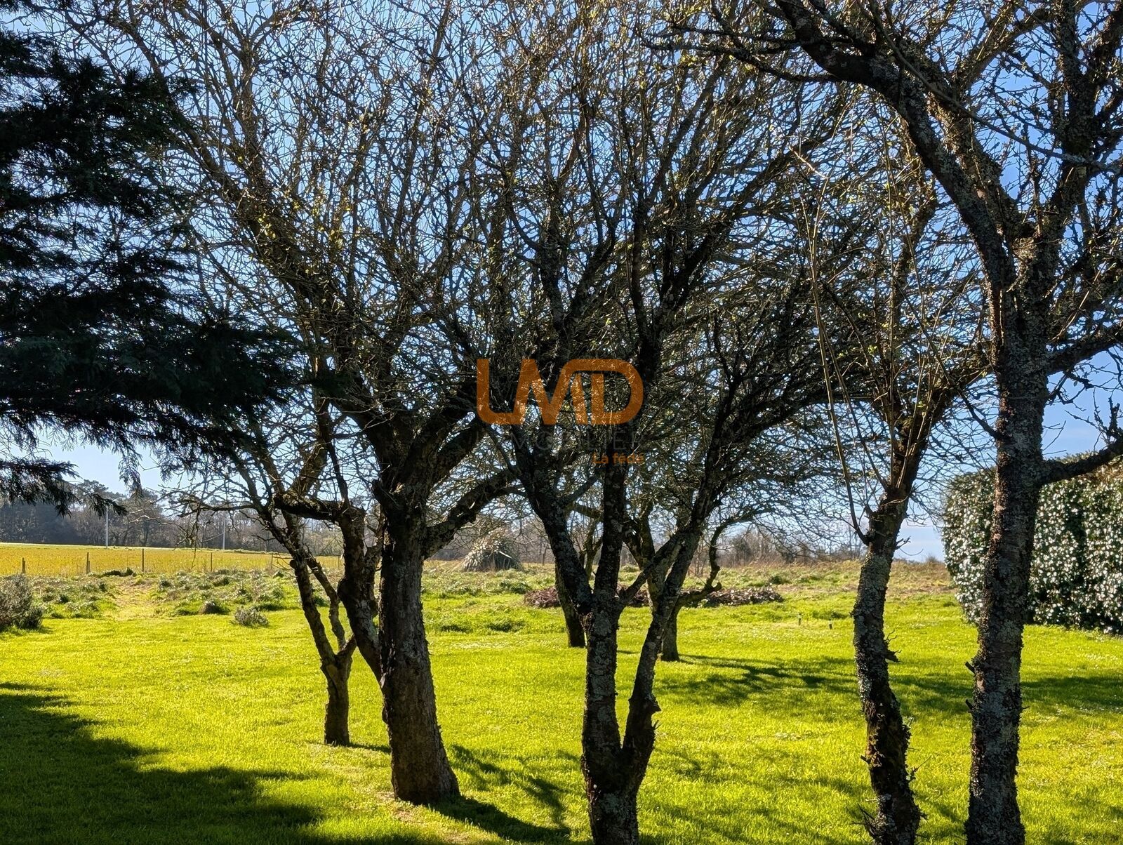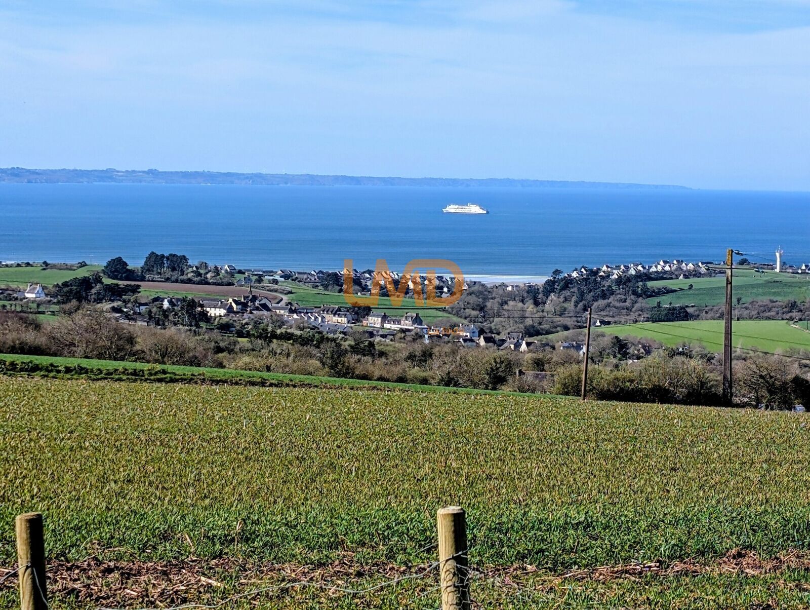Le terrain d'environ 12 000 m2 offre un verger, un grand espace dégagé au calme avec une vue panoramique sur les Mont d'Arrée , la côte bretonne et la mer à perte de vue.