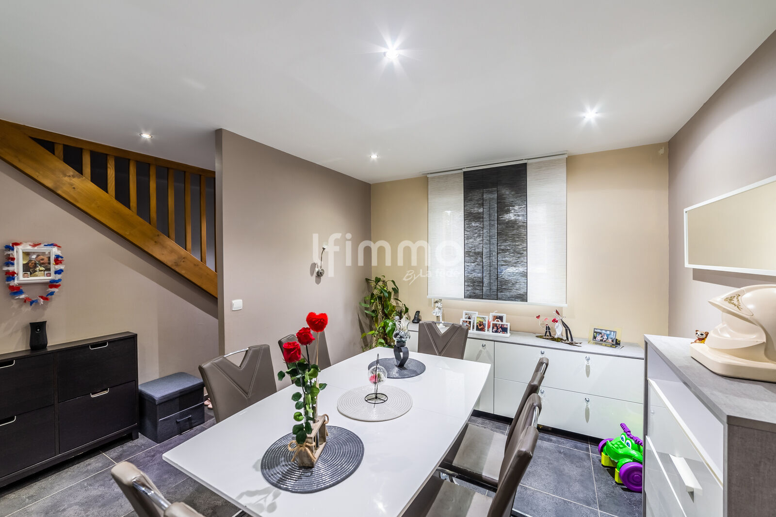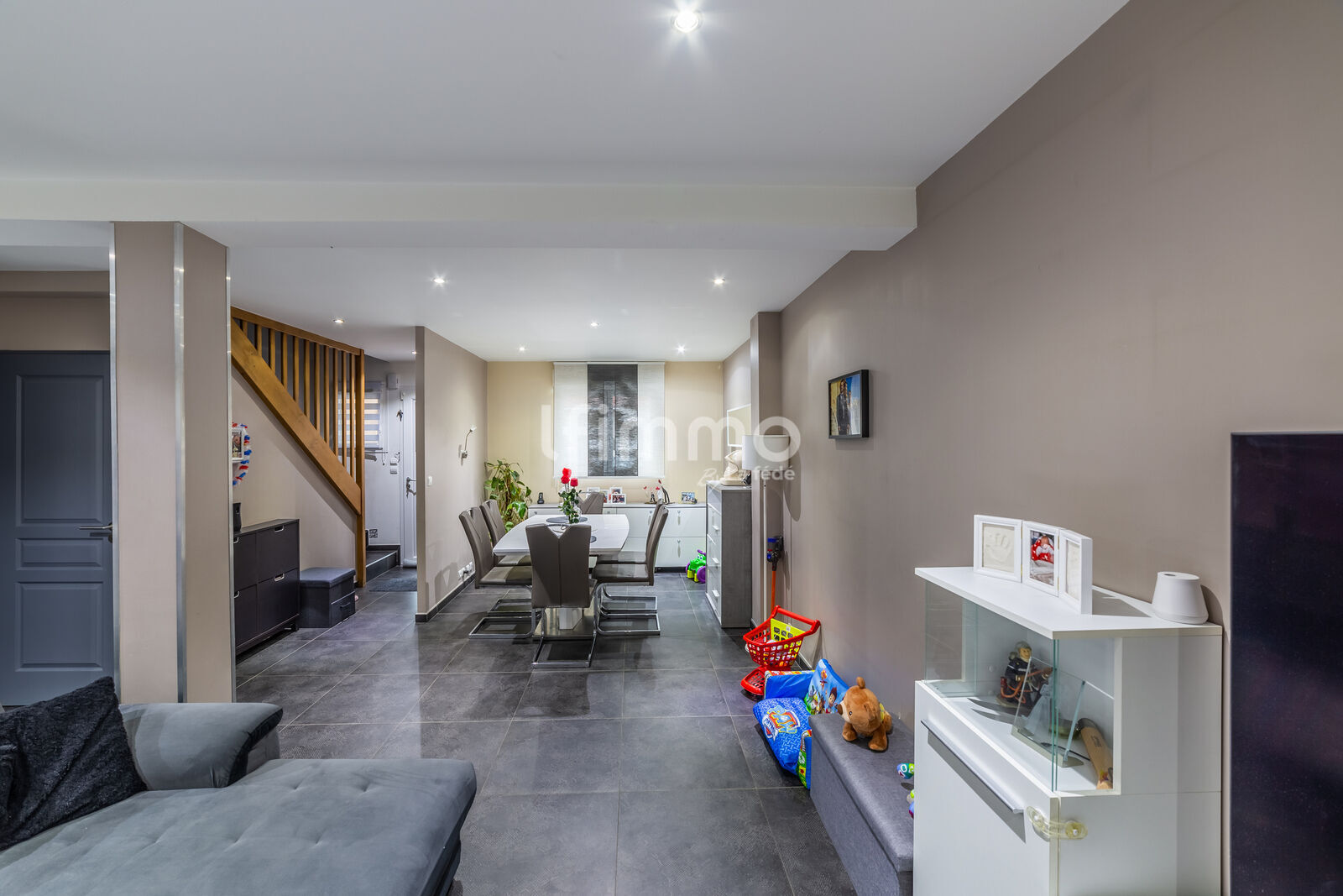 Au Rez-de-Chaussée, l’espace de vie est organisé autour d'une cuisine bien équipée 🍳, ouverte à l'américaine, vers un salon-séjour 🛋️ spacieux et lumineux. Cet agencement favorise la convivialité et la circulation entre les pièces principales. L’accès direct à la terrasse 🏖️ et au jardinet 🍅 s’effectue aisément depuis la pièce à vivre, via des portes-fenêtres. 👍 L'accès aux extérieurs est complété par un portillon, présent sur la devanture.