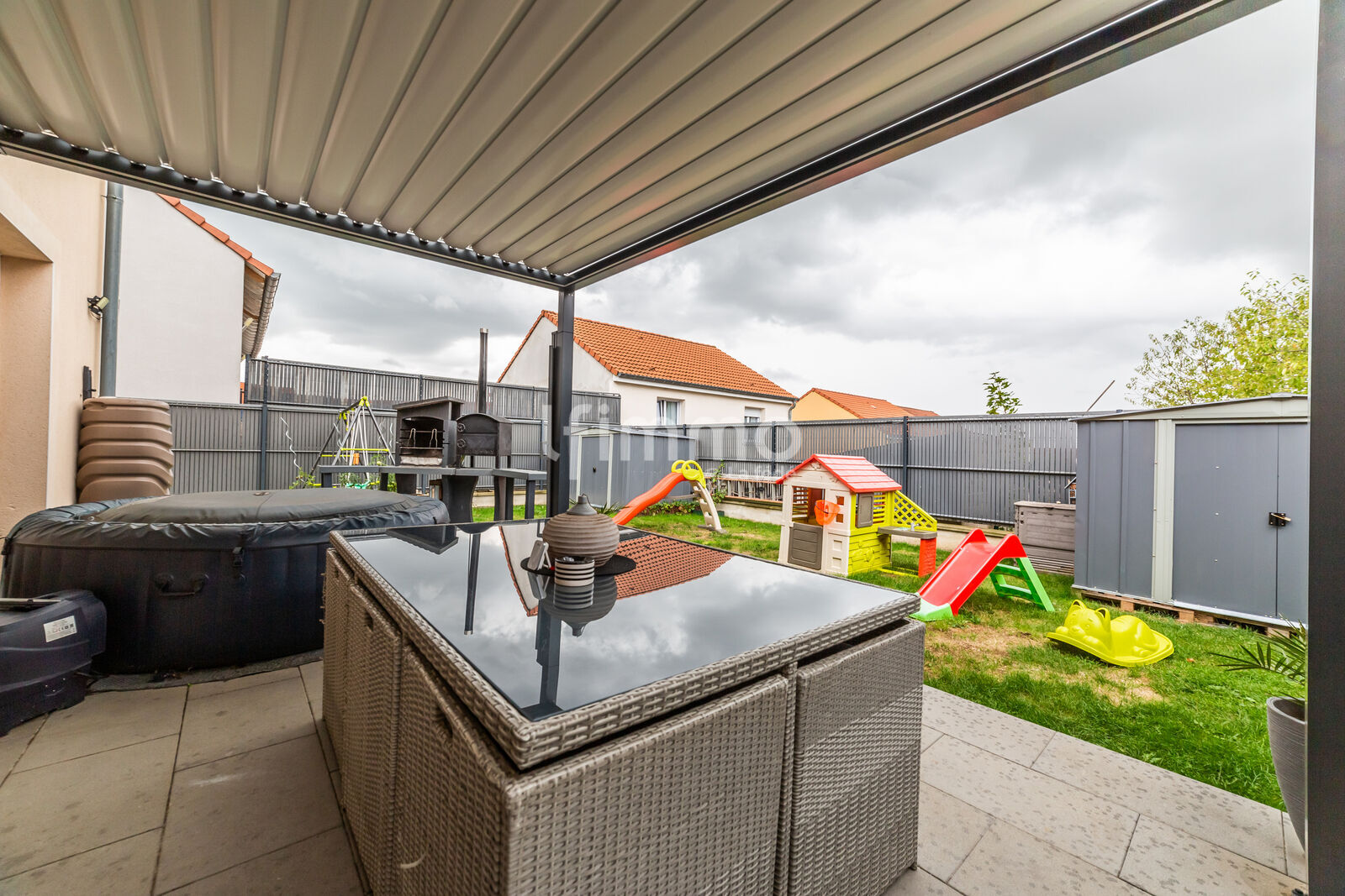 Les extérieurs ont fait l’objet d’améliorations, ces dernières années, visant à optimiser le confort et l’usage, notamment par l’installation d’une pergola, l’habillage de la terrasse, le renouvellement des brises vues et la création d’un sas d’entrée.