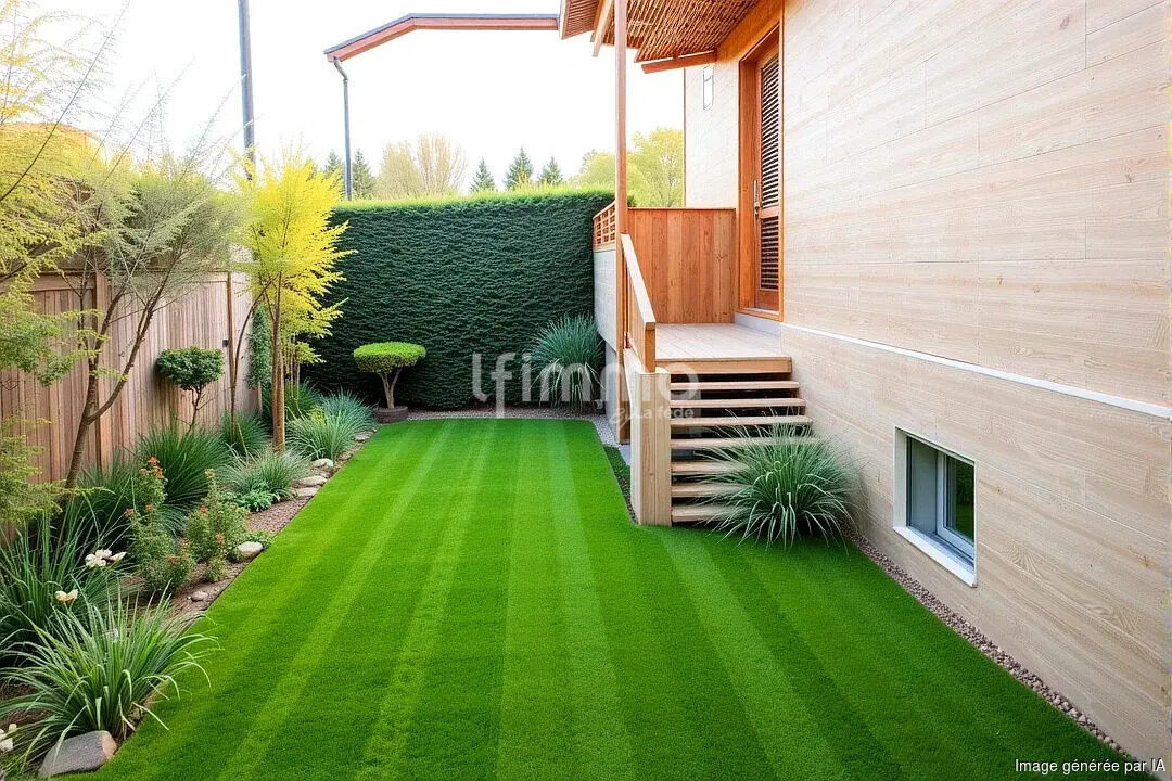 Une cour et des espaces verts à l’extérieur, le tout avec peu d’entretien.