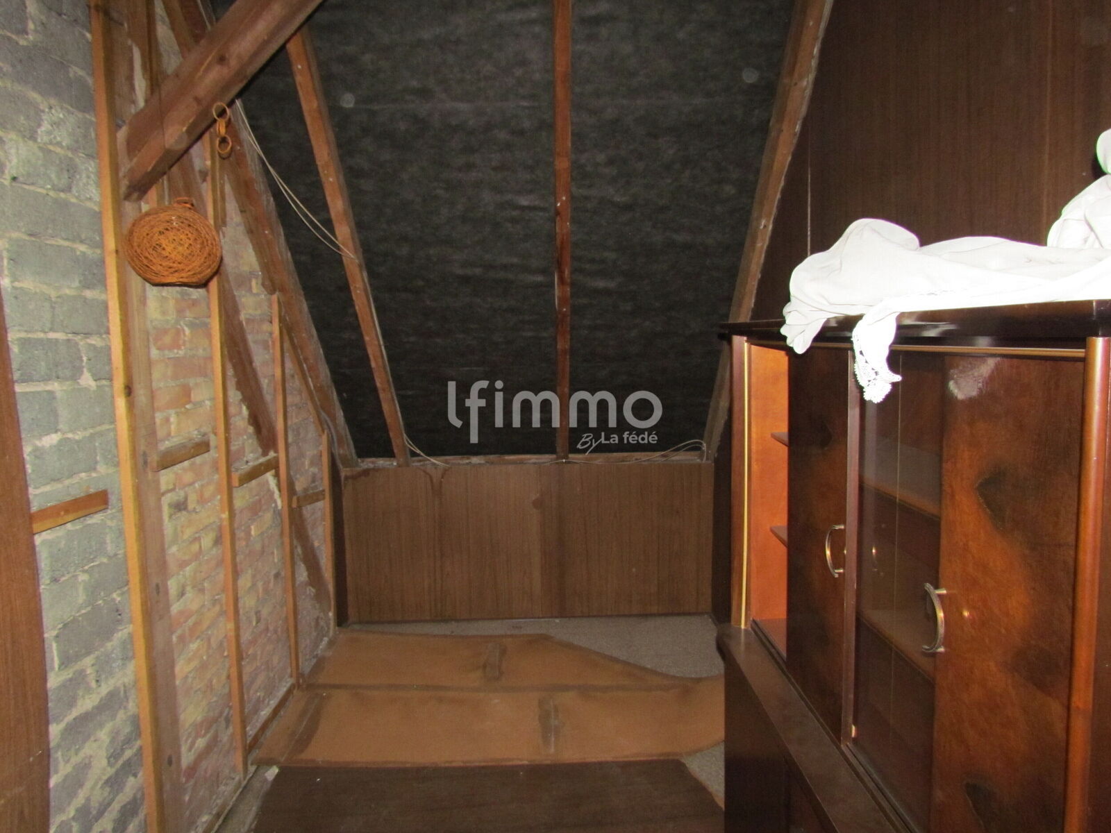 Maison à rénover avec un bon potentiel, actuellement environ 86m2 habitables, pouvant aller jusqu’à environ 115m2 habitables après exploitation des surfaces des combles aménageables à l’étage.