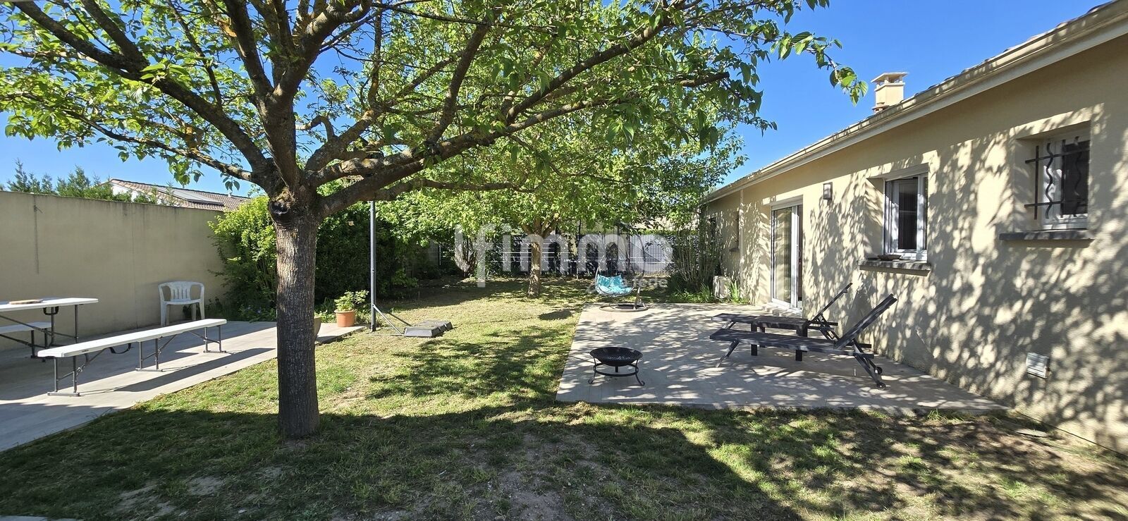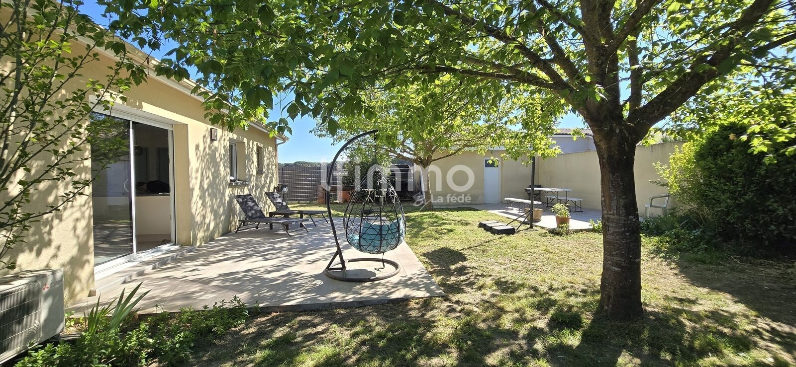 Implantée sur une parcelle de plus de 720 m², la maison bénéficie d’un bel extérieur propice à la détente.