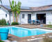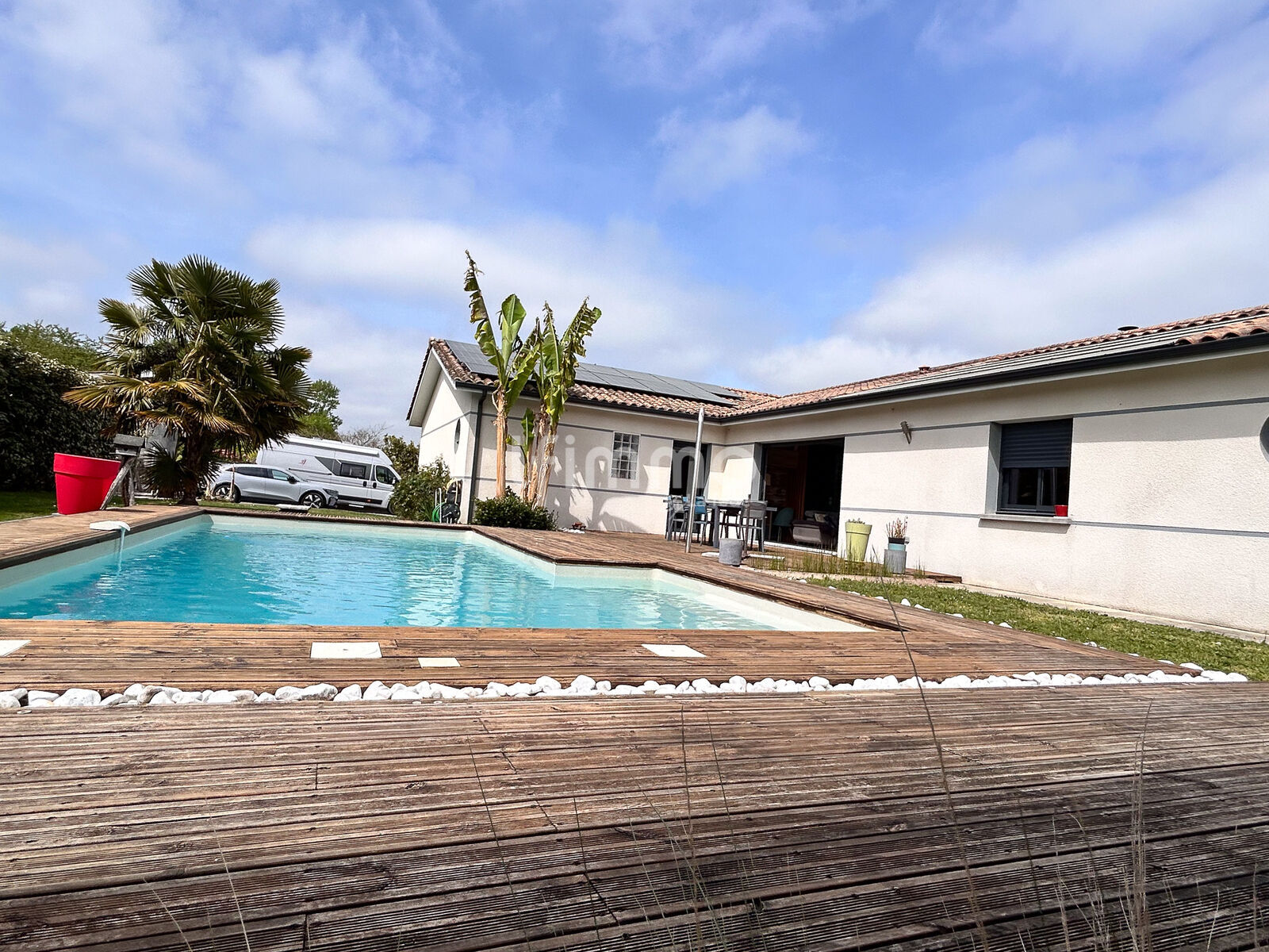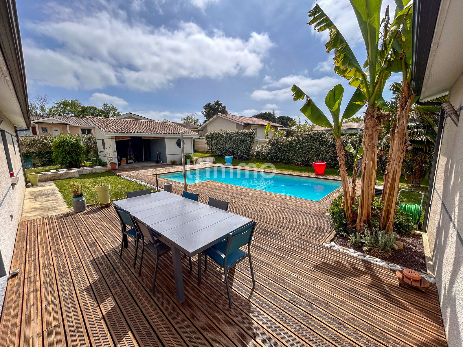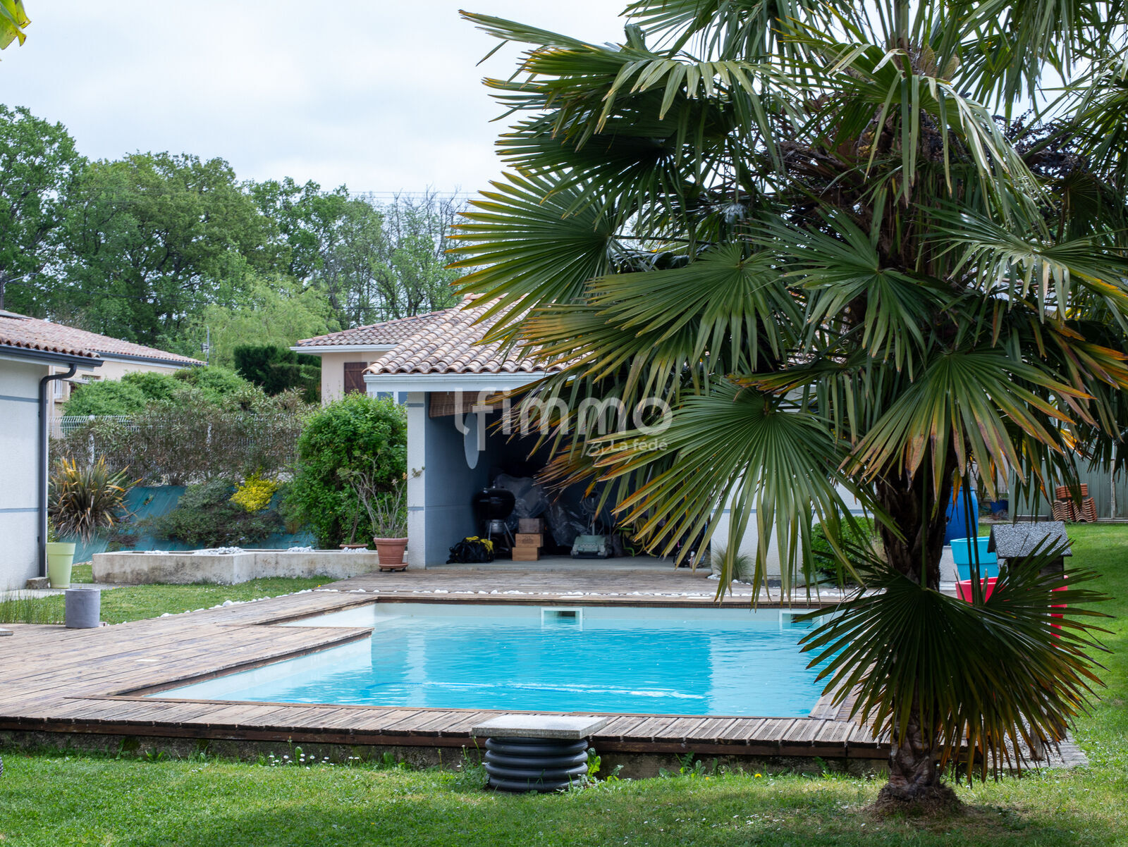 Dès l’entrée, laissez-vous séduire par la pièce de vie de près de 50 m², baignée de lumière grâce à sa double exposition. Sa baie vitrée à galandage ouvre pleinement sur une terrasse en bois et une piscine élégante, créant une parfaite continuité entre intérieur et extérieur.