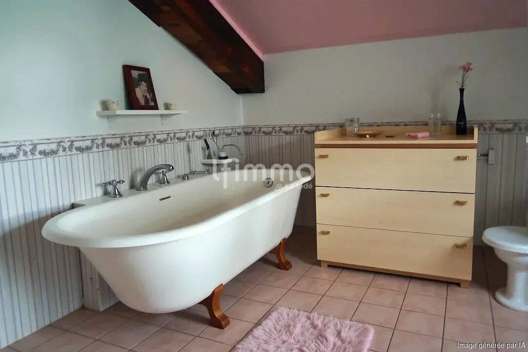 Le bien se compose de sept pièces principales, dont cinq chambres, permettant d’accueillir aisément une famille nombreuse. La maison comprend une salle de bain, une salle d’eau et deux WC, offrant ainsi une organisation fonctionnelle des espaces. La cuisine est équipée, facilitant la préparation des repas au quotidien. Un séjour agrémenté d’une cheminée apporte une ambiance chaleureuse et conviviale.